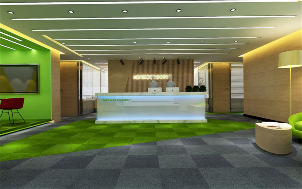接待前臺的設計,用象征生命的綠色和原木色為主題,兩種色彩交換呼應,一切體現了自然和諧,生機勃勃的韻味,讓人看上去清新舒適。