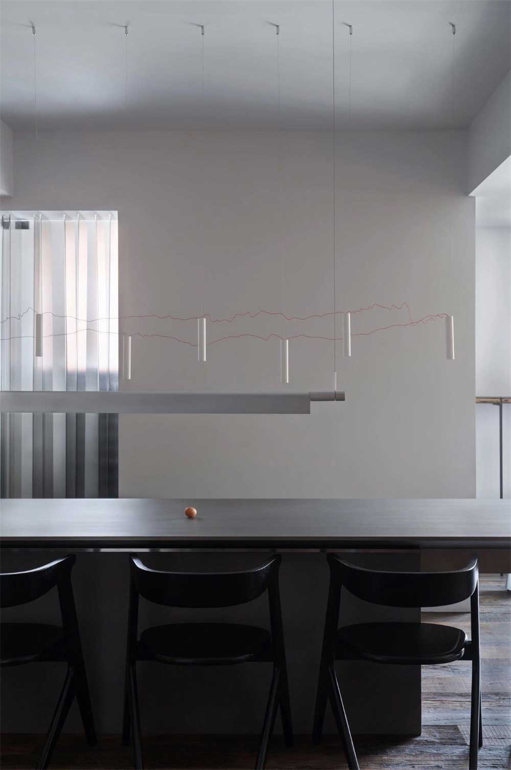 長條形的吧臺桌,黑色的實木椅子,既能做洽談區(qū),也是工作之余休閑和洽談的好時光。