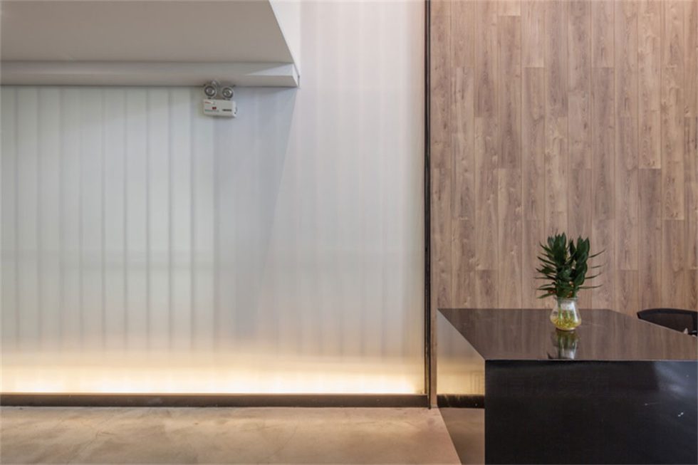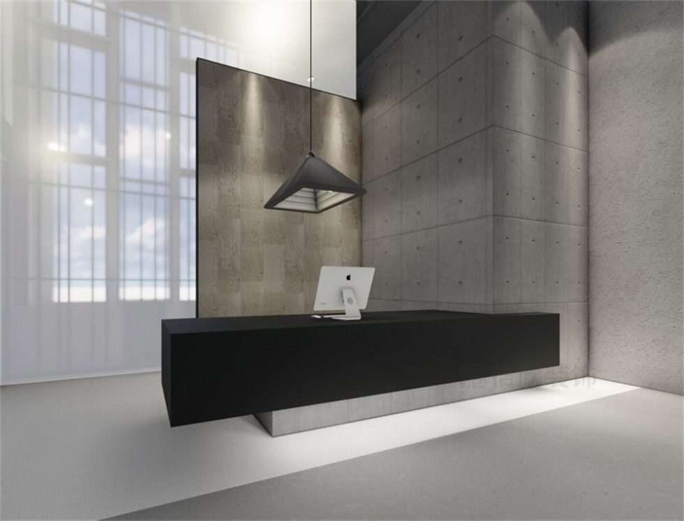 前臺(tái)的設(shè)計(jì),原始的水泥板工業(yè)感的狂野,原木飾面板和黑色人造石,提升了檔次,把古典和現(xiàn)實(shí)的情懷,做了一個(gè)完美的融合。