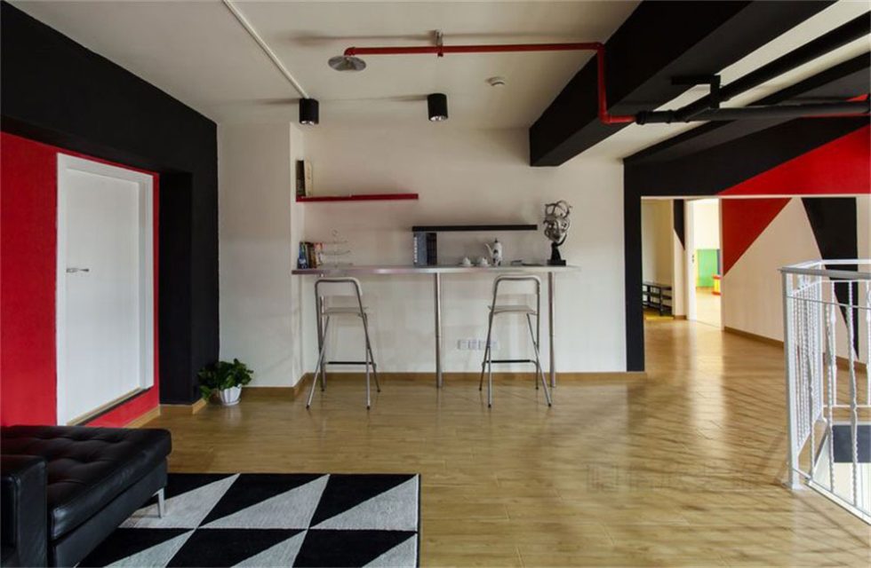 大廳的設(shè)計(jì),采用紅黑白三種顏色的分隔和區(qū)分,色彩對(duì)比強(qiáng)烈,新穎獨(dú)特,瞬間填滿了整個(gè)空間,簡(jiǎn)單而又不會(huì)感覺很空洞。