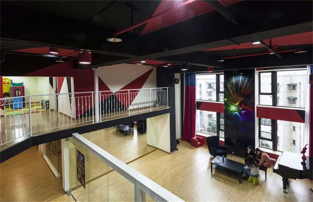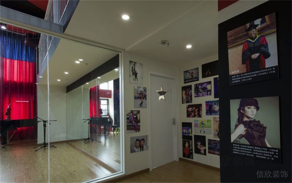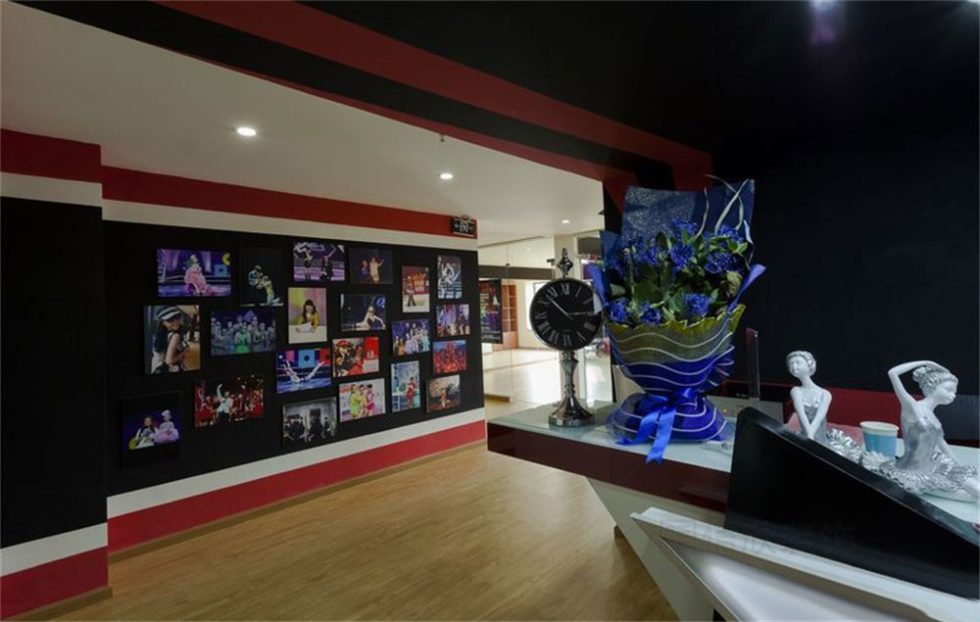 墻面和頂面酷炫而深沉的黑色,搭配白色閃亮的五角星圖形,寓意著黑暗最閃亮最耀眼的新星,將從這里冉冉上升。