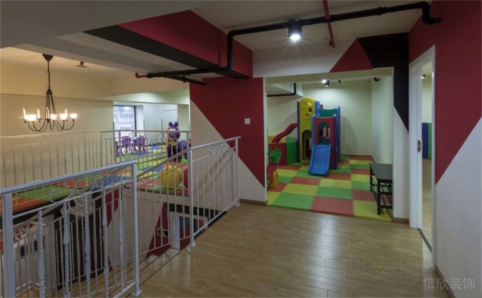 暖黃為主題的顏色,搭配孩子們喜歡的如彩虹般閃耀的七色護(hù)墻板,甲殼蟲玩偶等元素,充滿童趣和歡聲笑語(yǔ)的童年感覺。