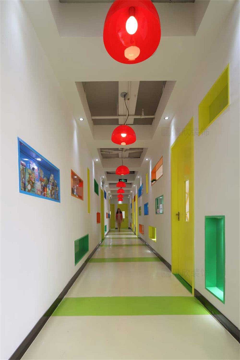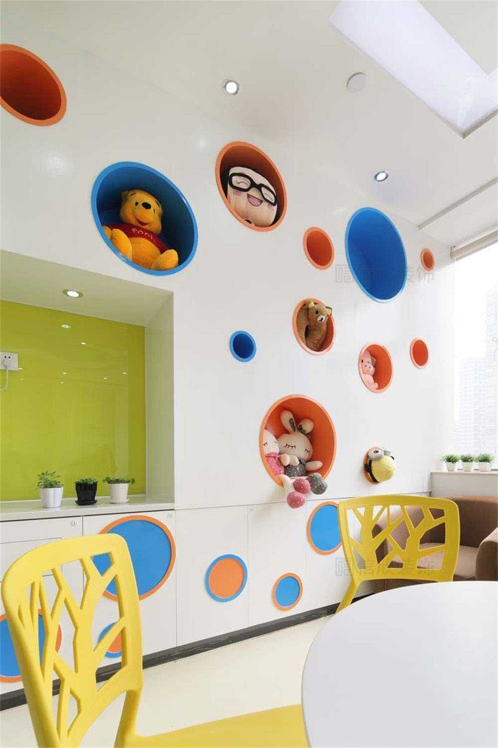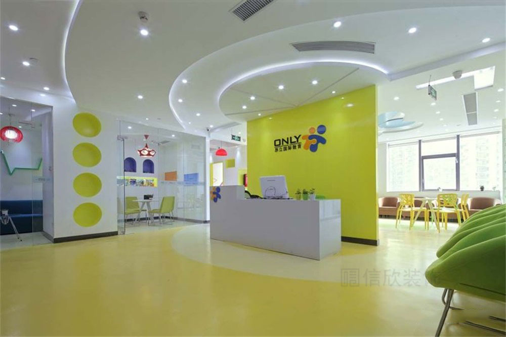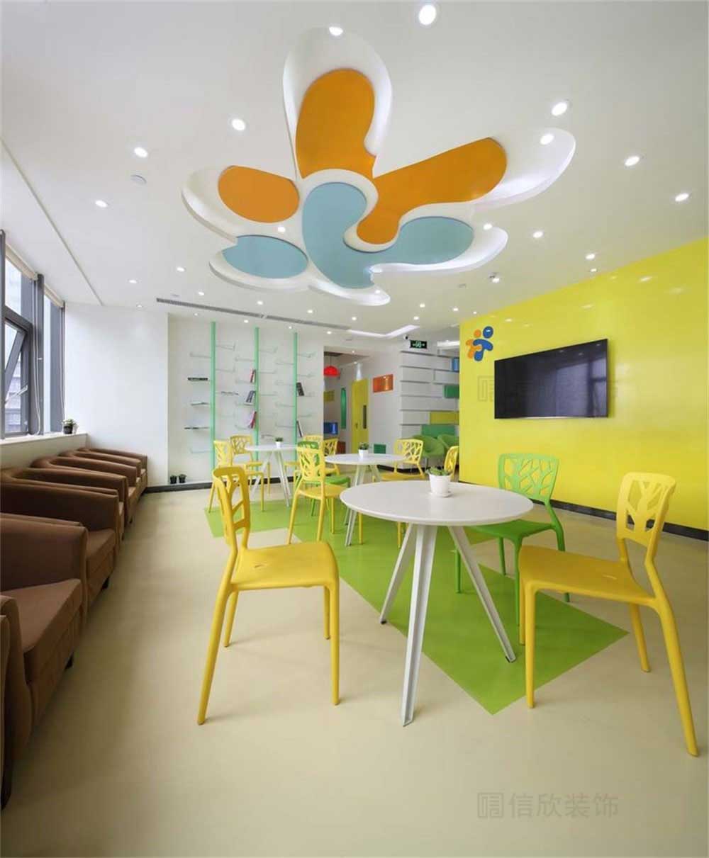 等候區(qū)采用一體式的石膏頂,加上鏤空的造型設計,如七色花一樣的閃耀,讓孩子對學校也充滿了向往和喜愛。