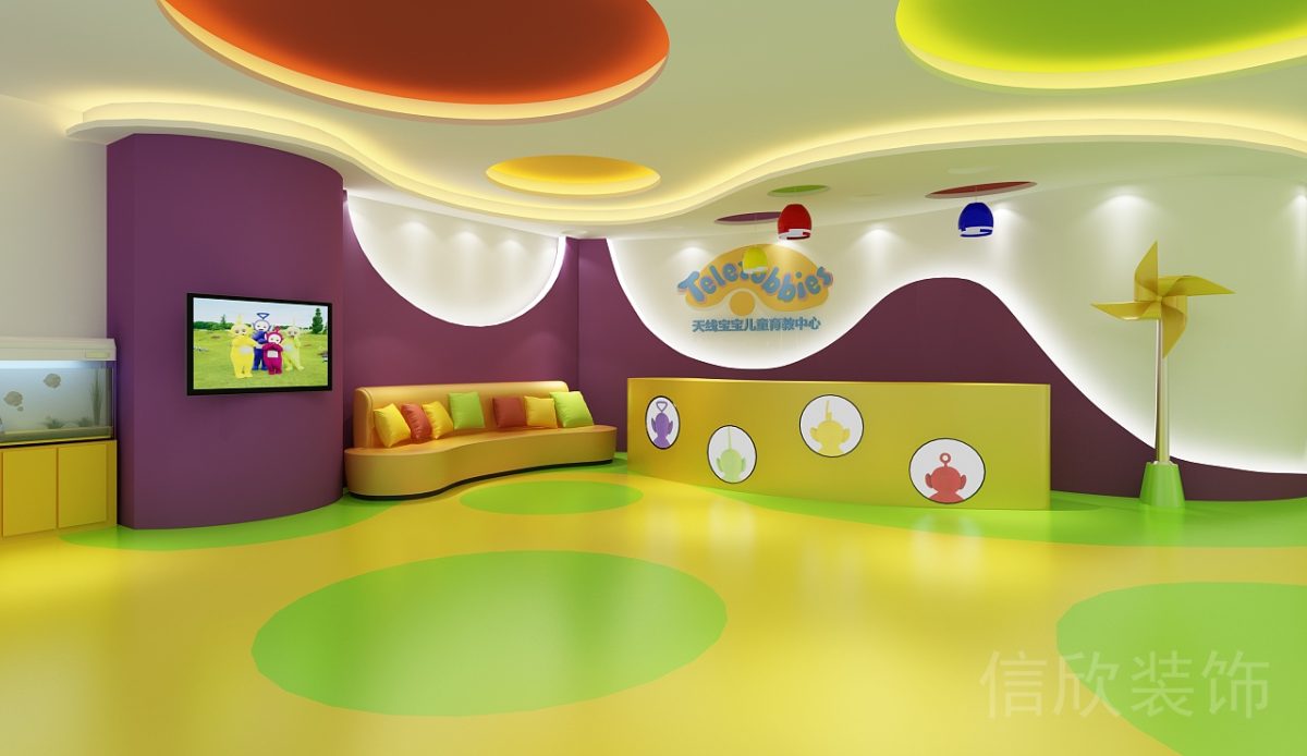 深圳市龍華區優品文化創意園糖果少兒培訓機構童趣橙子大廳裝修