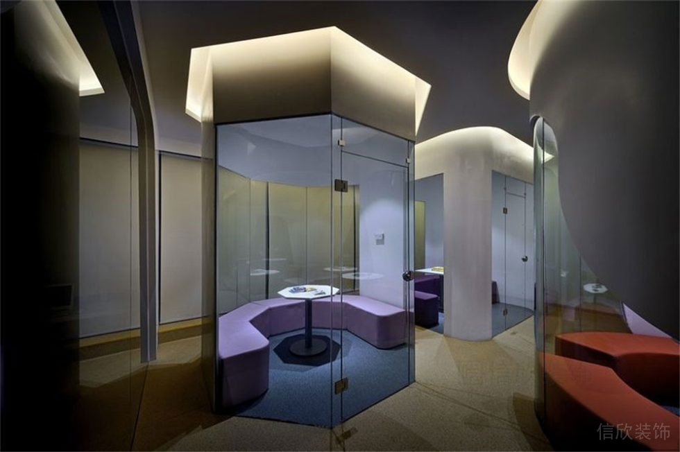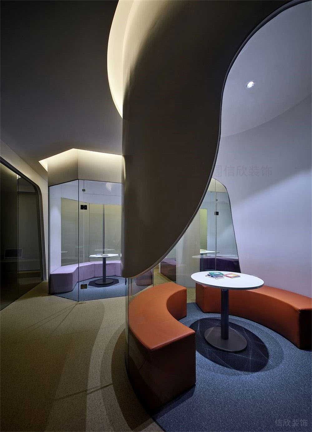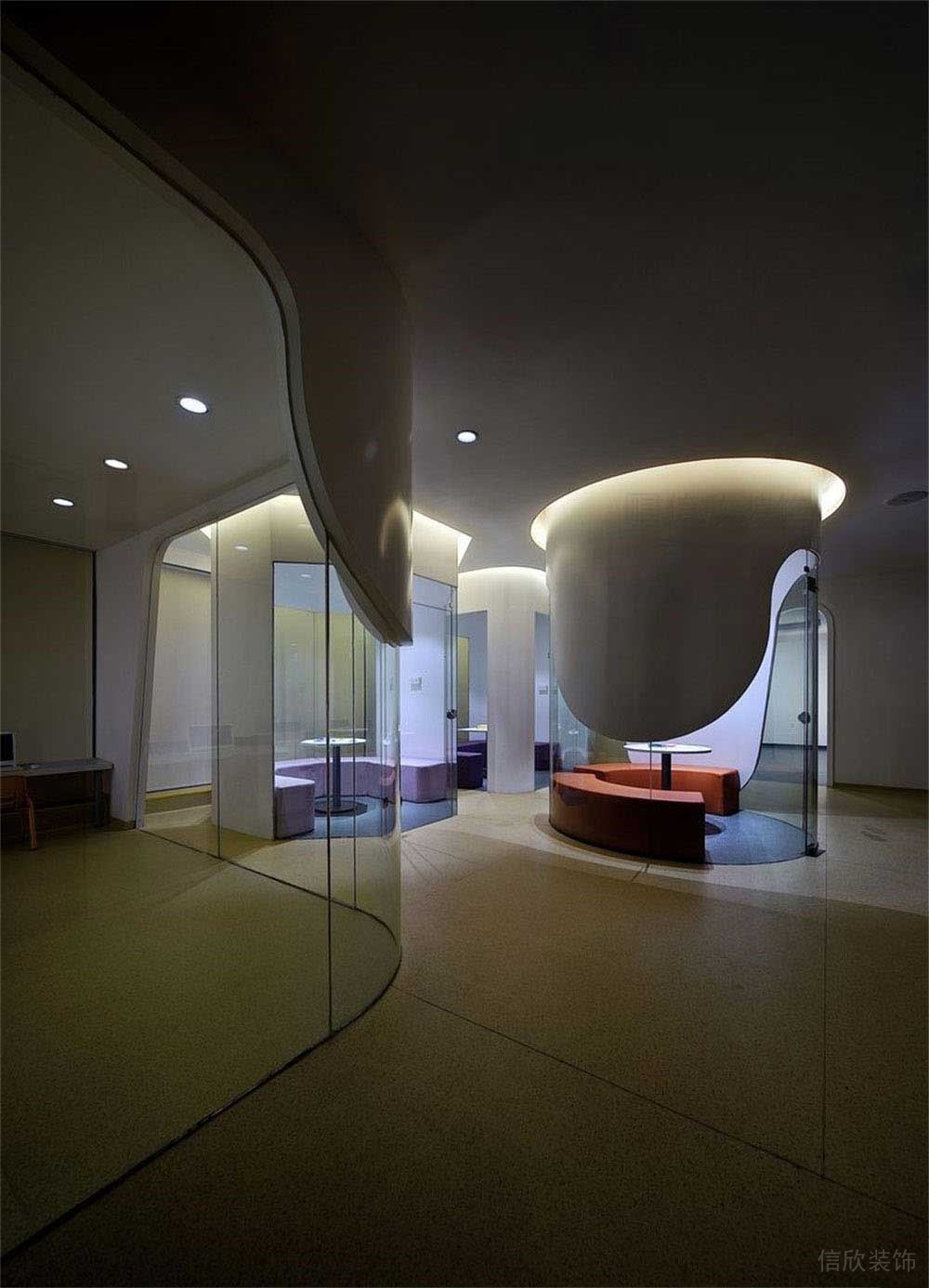 玻璃圓柱體的洽談室,圓弧形的沙發(fā),半封閉的感覺,保證隱私性的同時,又具備很強的設(shè)計感。