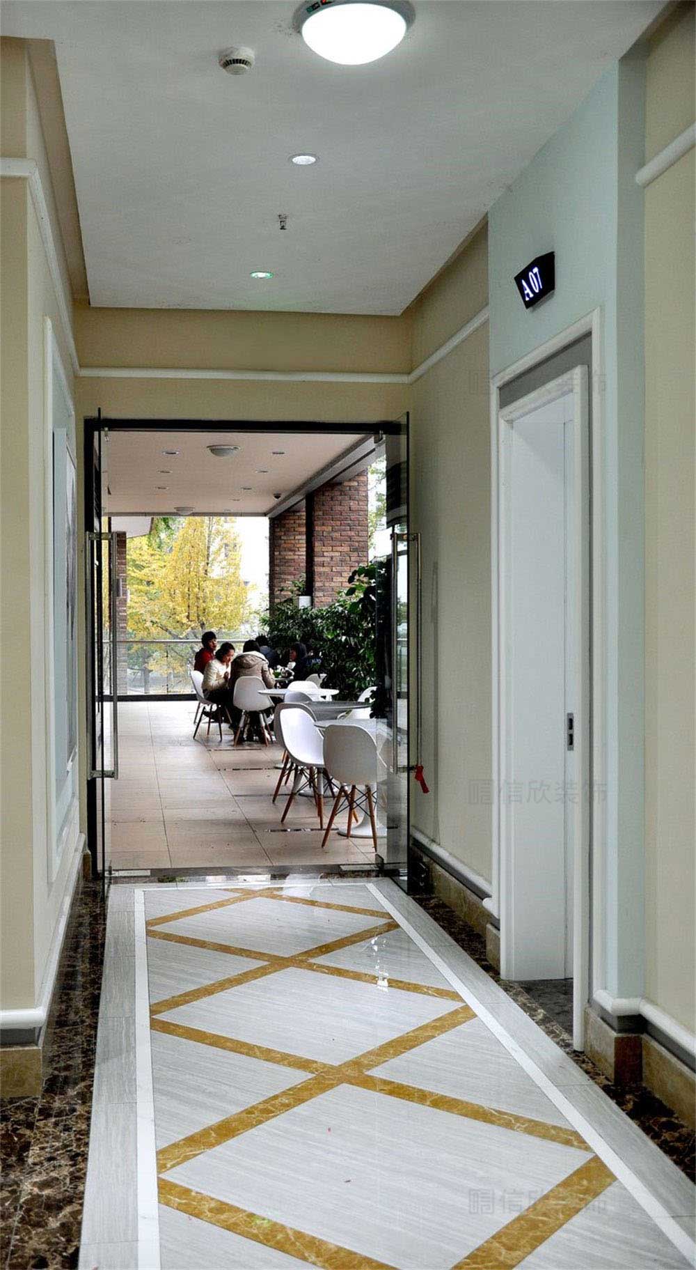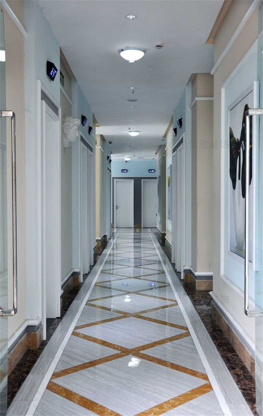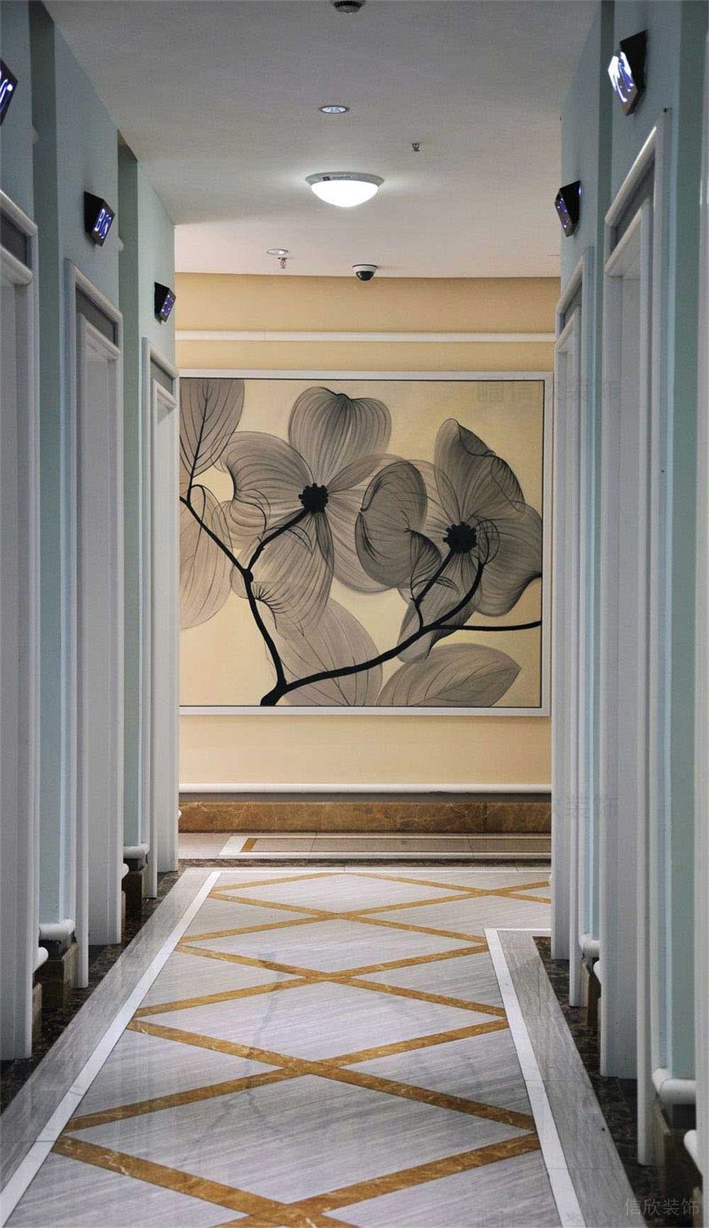 菱形大理石鋪貼的過道,曲線靈動,造型優美,又能在視覺上,使整條過道得到一點的放大和色彩提亮。