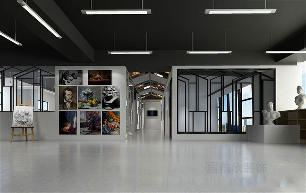 以教育為中心、藝術(shù)感體驗(yàn)經(jīng)營理念為核心。室內(nèi)空間融入特色文化與藝術(shù)元素,營造整體體驗(yàn)式藝術(shù)氛圍,走全面型美術(shù)培訓(xùn)尖端路線。