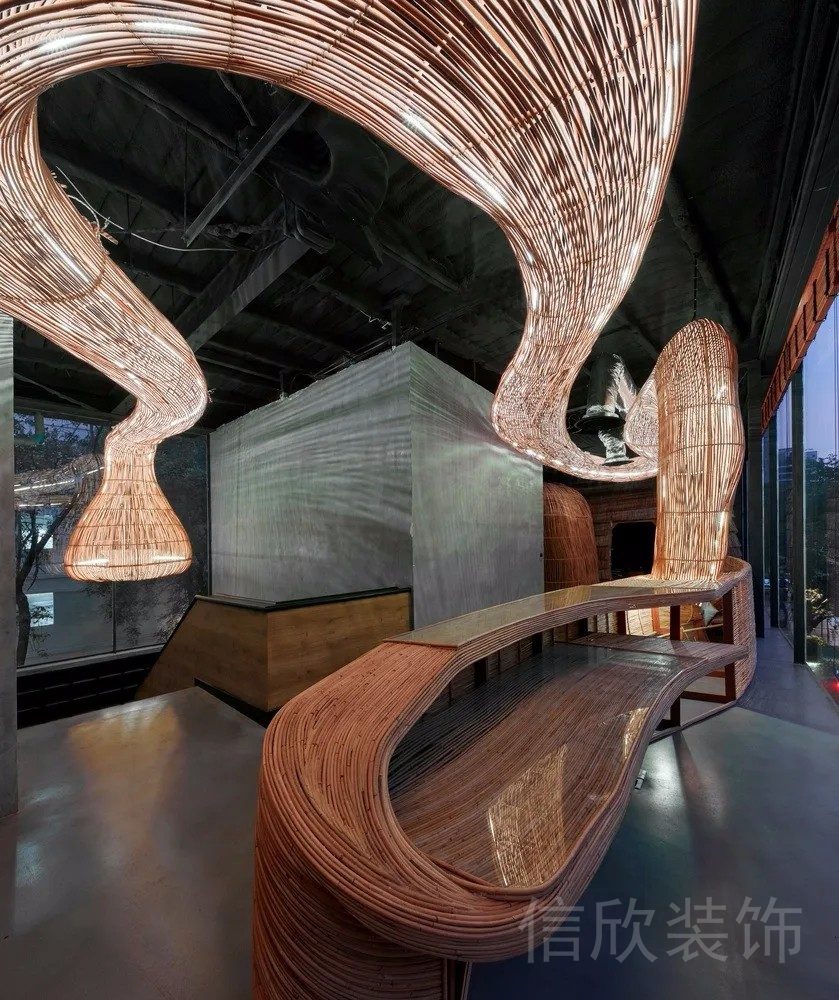 原木墻壁給辦公室增添自然的氛圍,黑色原木墻壁的增強(qiáng)了現(xiàn)代感和專業(yè)感。