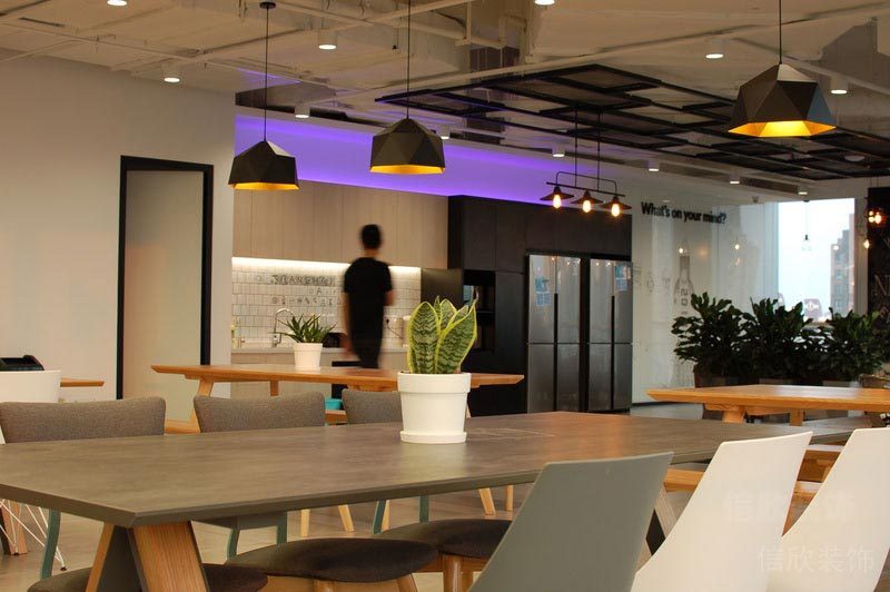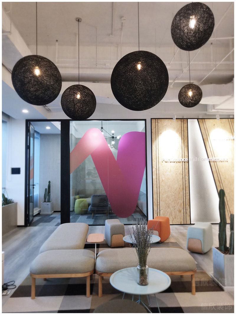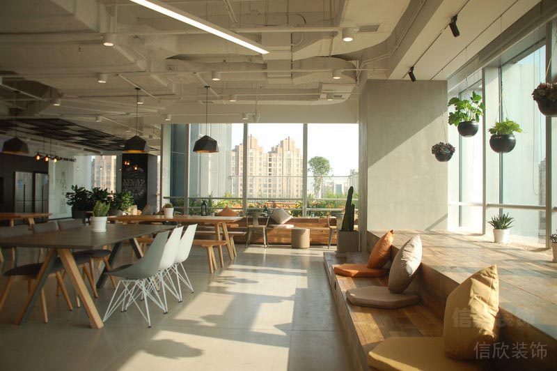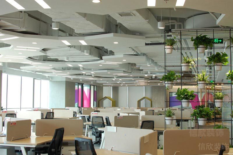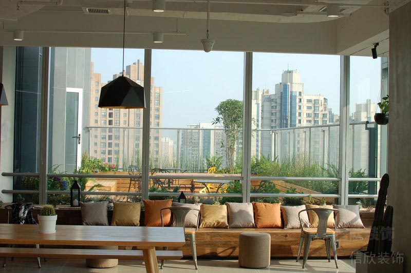 本案位于深圳市是一所田園風(fēng)格的辦公室裝修設(shè)計(jì)案例,在墻面上大量使用玻璃墻,使空間的通透性強(qiáng),人們可以通過玻璃看到窗外的世界,使辦公空間與室外自然環(huán)境在一定程度上達(dá)到相互融合。同時(shí),室內(nèi)植物在陽光的照射下形成自然的光影,對(duì)辦公空間有一定裝飾性。