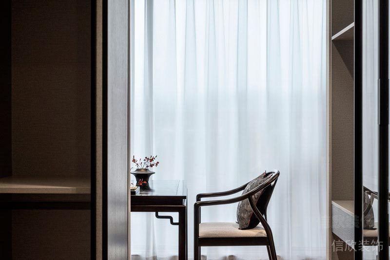 書房的設在樓梯轉角的開放式空間上,既通透又明亮,符合中式設計的特點,采用了古色古香的黑胡桃木書桌的和書桌,讓您靜思閱讀的時候;可以可以細細感受中華文化所獨特的書香氣。