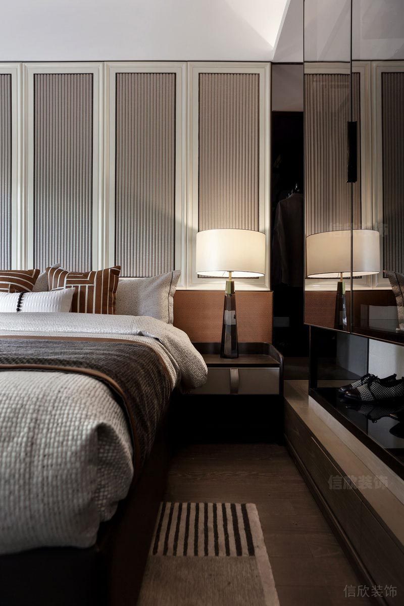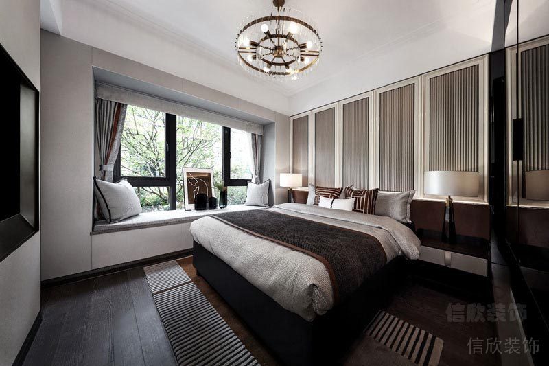 溫馨的布藝床,舒適而實(shí)用,仿古吊燈造型簡(jiǎn)潔而沖擊感墻,木藝背景墻簡(jiǎn)單而線條優(yōu)美流暢。
