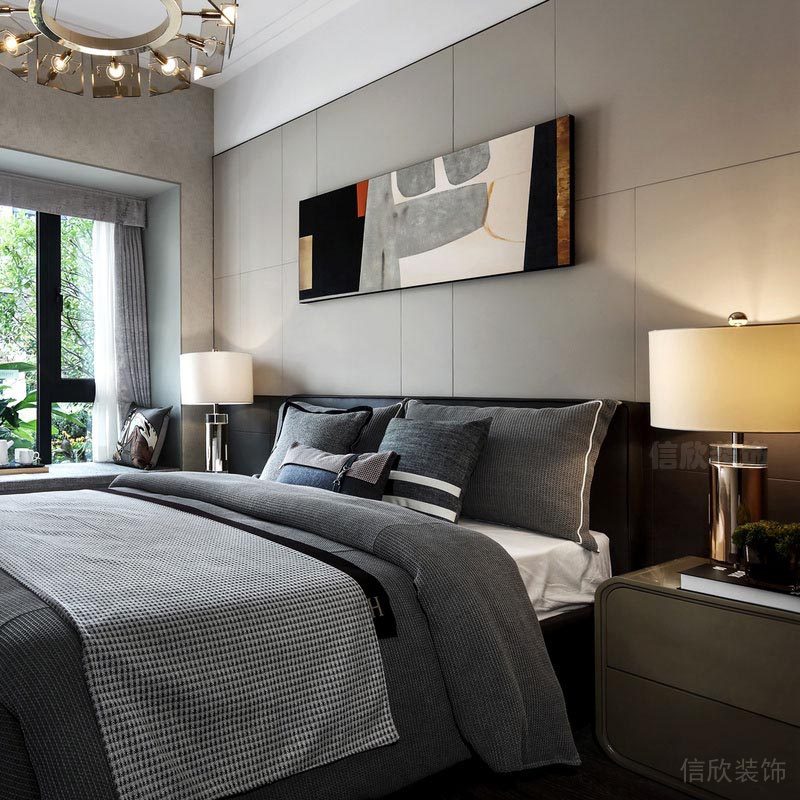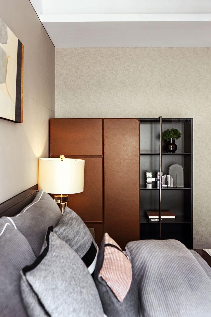 灰色調(diào)為主題的次臥,冷傲而高雅,造型吊燈,中性色的柜子,配合明亮日光充足的環(huán)境;詮釋出精神世界的追求和氣質(zhì)。