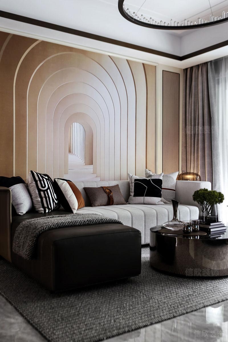 在視覺上舍棄張揚(yáng),通過(guò)對(duì)線條與色塊的巧妙應(yīng)用,營(yíng)造出輕松的空間氛圍,傳遞“輕奢華、新時(shí)尚”的生活理念。