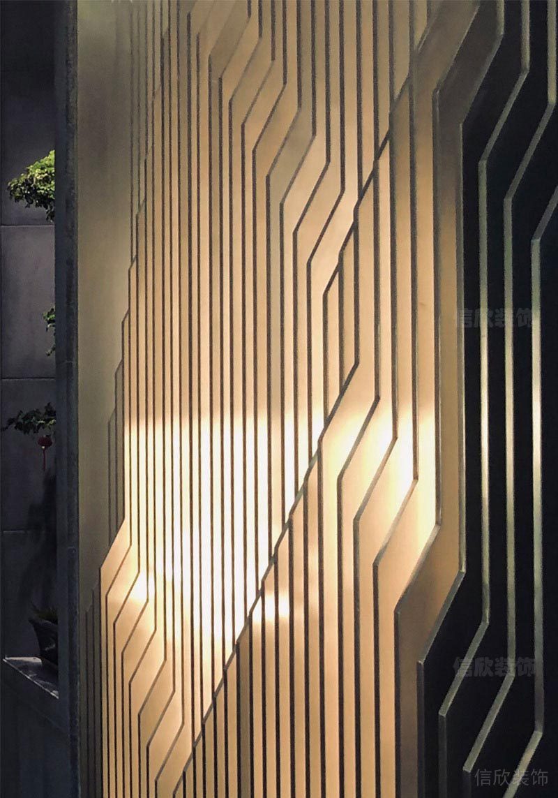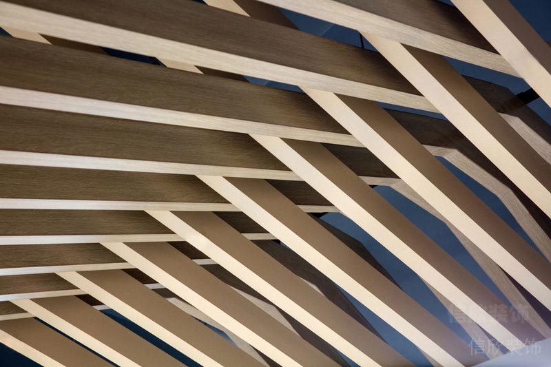 深淺木色鋁扁通相互交錯(cuò),居中對(duì)稱(chēng),在統(tǒng)一中有變化。